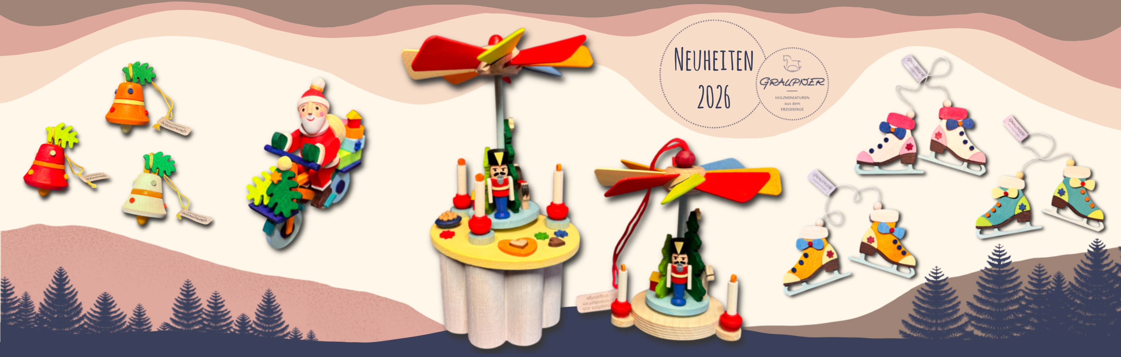 Entdecken Sie unser umfangreiches Sortiment an Christbaumschmuck aus Holz, Spieldosen, Pyramiden, Wohnungsdekoration sowie kleine Geschenke für alle Anlässe. Jede Holzminiatur wird in unserer erzgebirgischen Manufaktur von Hand und mit ganz viel Liebe gefertigt.