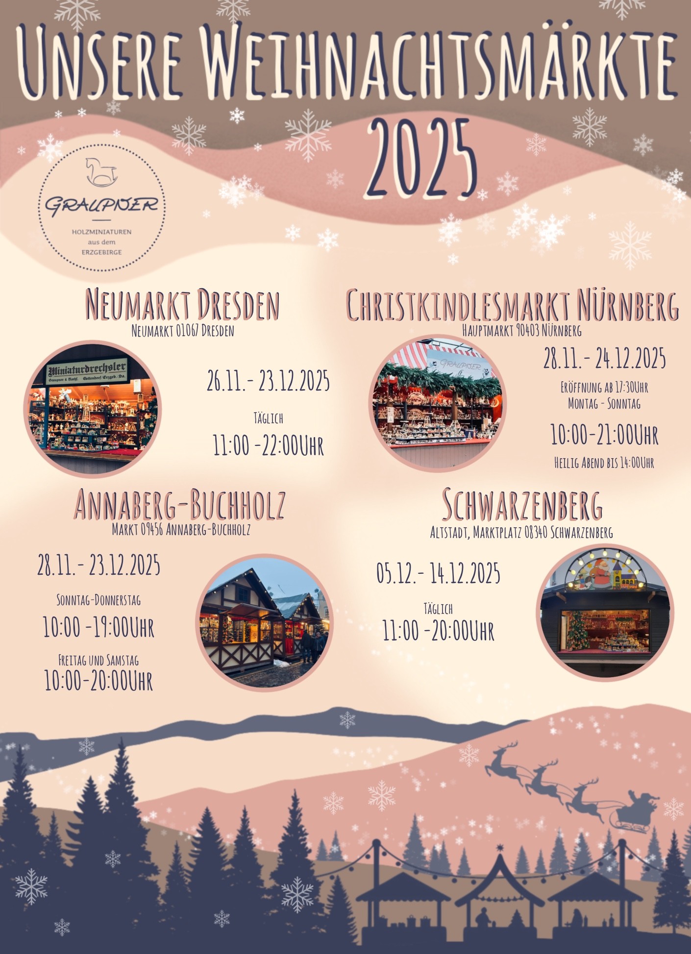 Sometimes we like to leave our workshop and travel the world with our products. We like to present our work and products to fans and enthusiasts of our manufactory. You can find us on different Christmas markets. We also like to organize events together with our retailers. Additionally, we display our product range at major tradeshows.