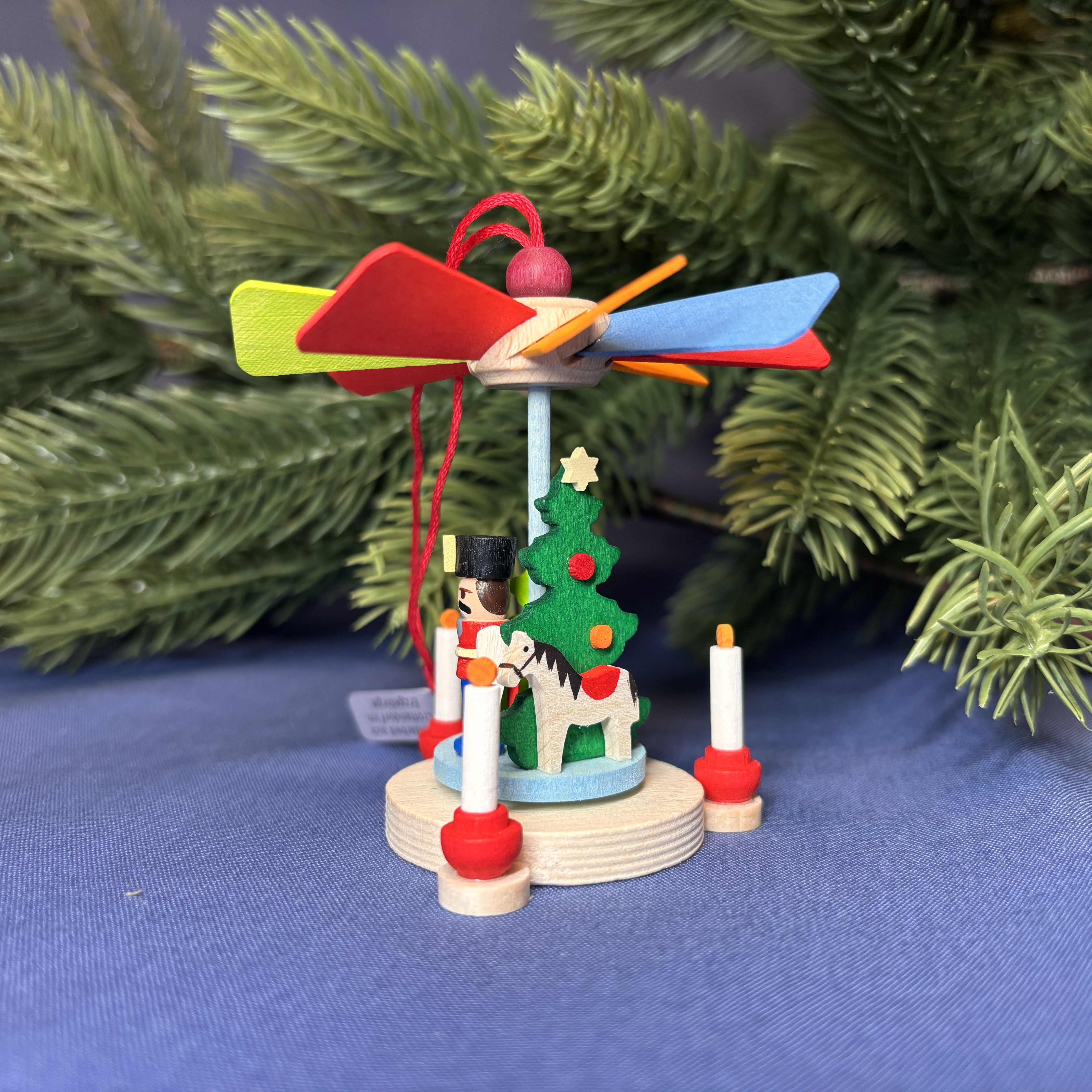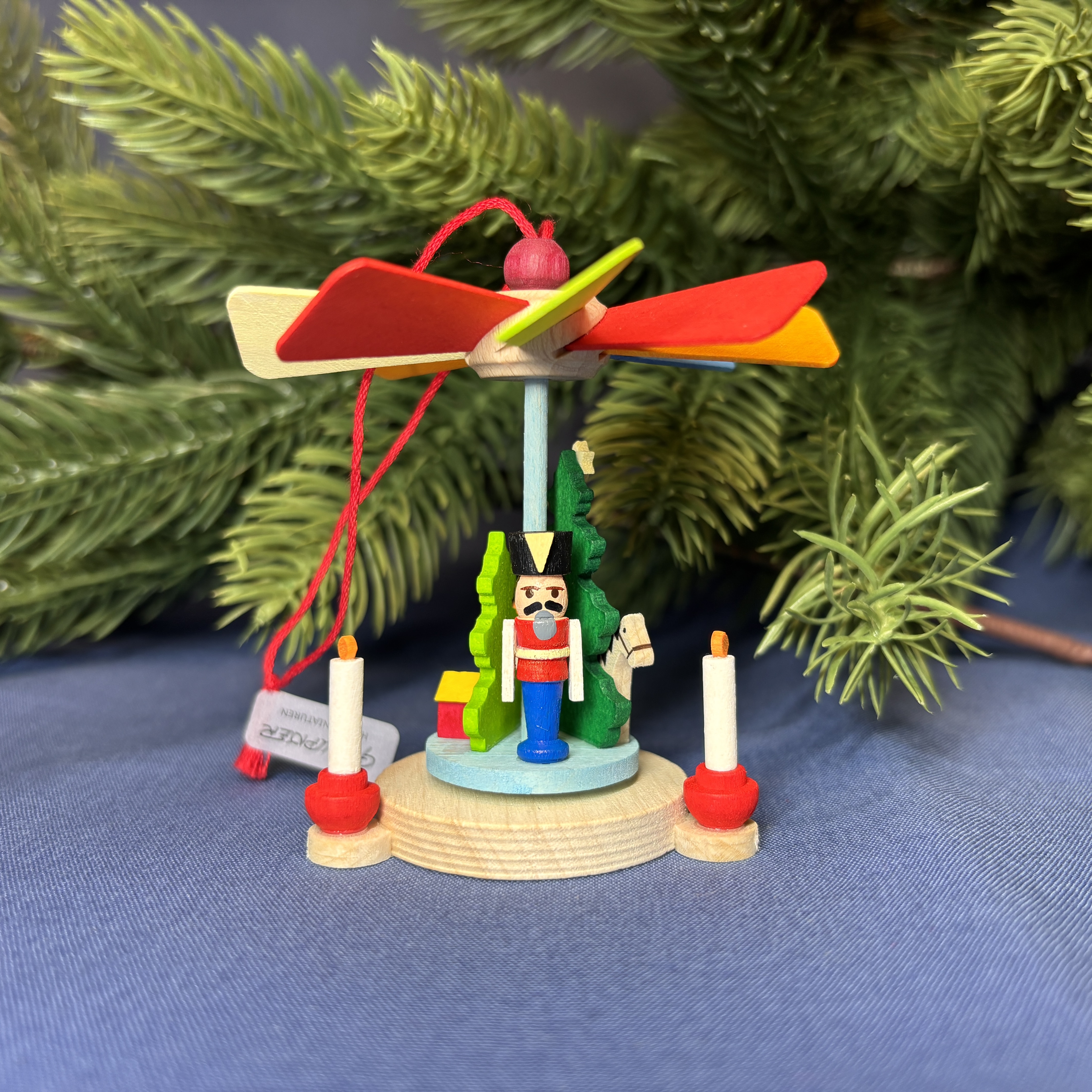 Christmas tree ornament 'Pyramid nutcracker' - an original handmade miniature. Straight from the artisans workshop – this is a handcrafted and unique piece of Erzgebirge folk art in its highest quality.